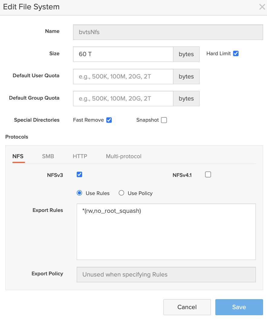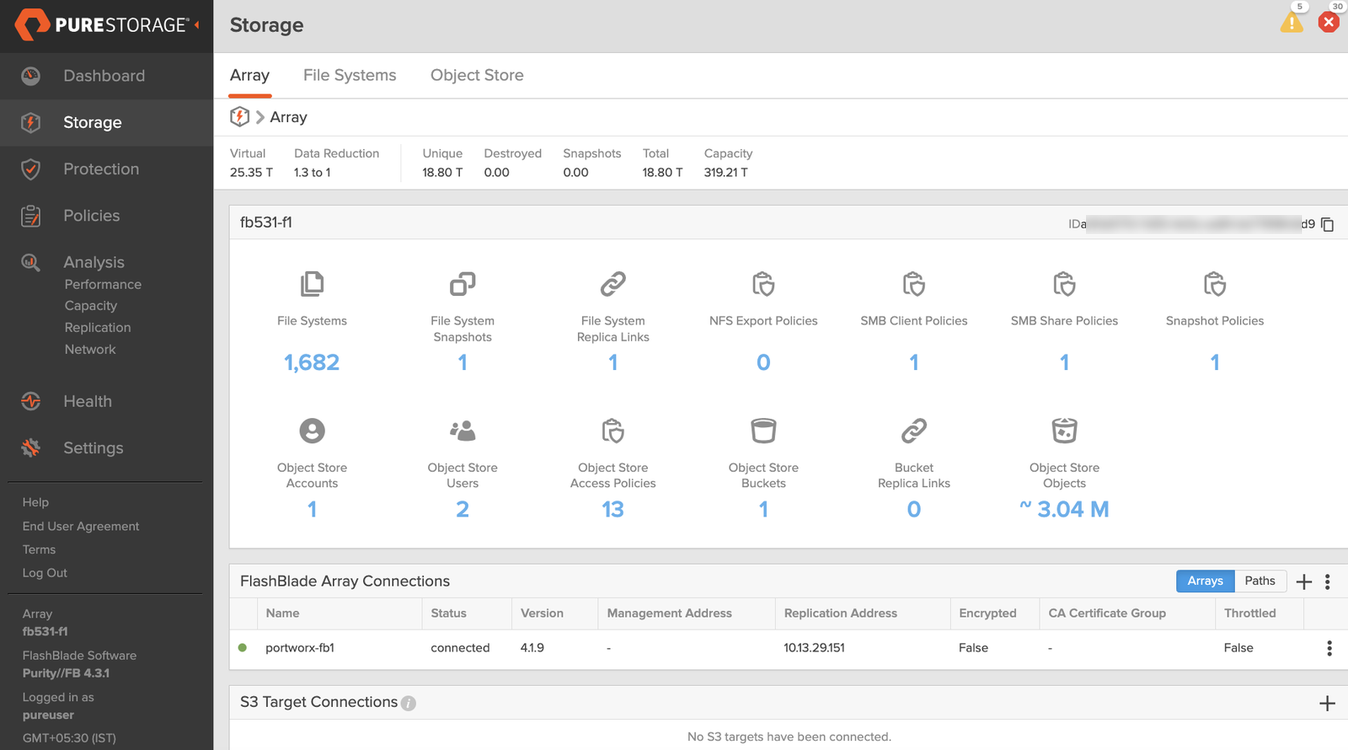 To troubleshoot this scenario, you need to disable Snapshot option in FlashBlade user interface. There are two associated scenarios you can encounter here: