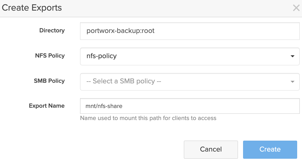 - Export Name: enter an export name of your choice (name used to mount the path for clients to access)
