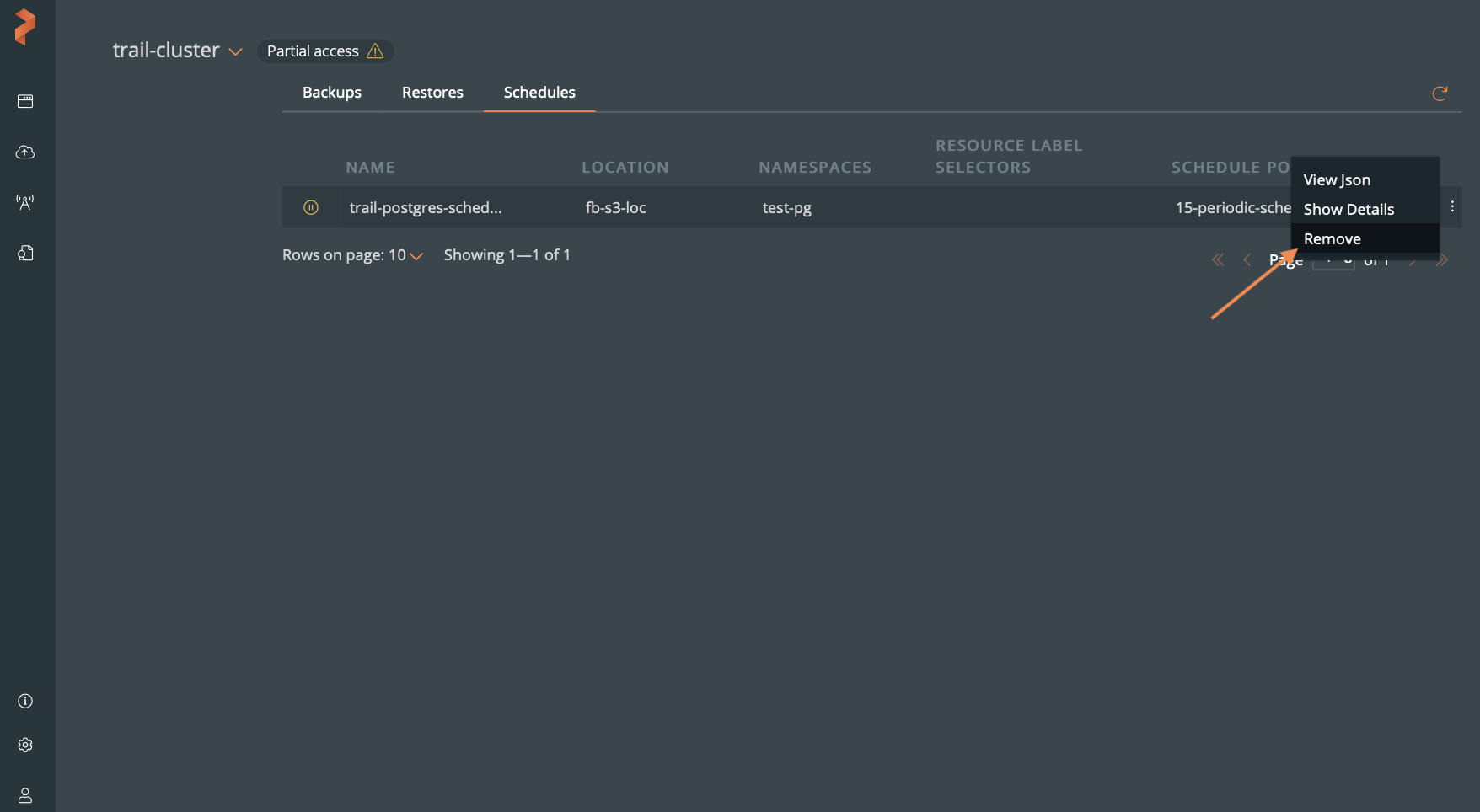 From the home page, choose the cluster that contains the stranded schedules(s) belonging to a user.