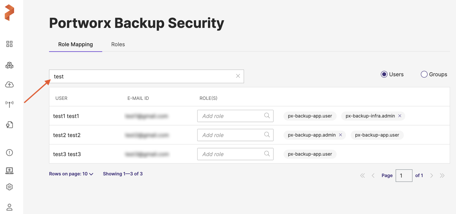 Portworx Backup enables you to filter the existing roles and mapped roles in the Roles page.