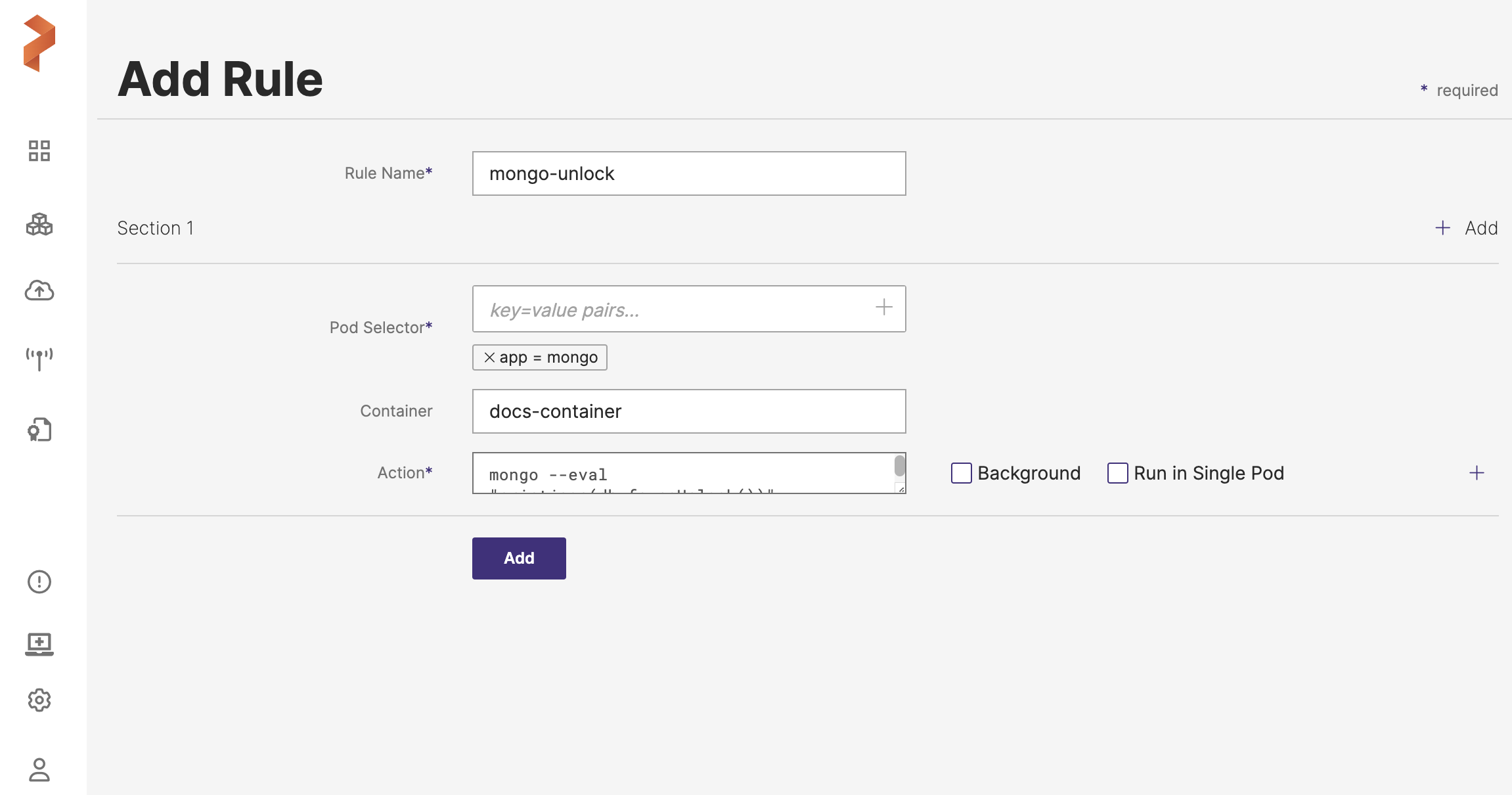 Pod Selector: add the following app label