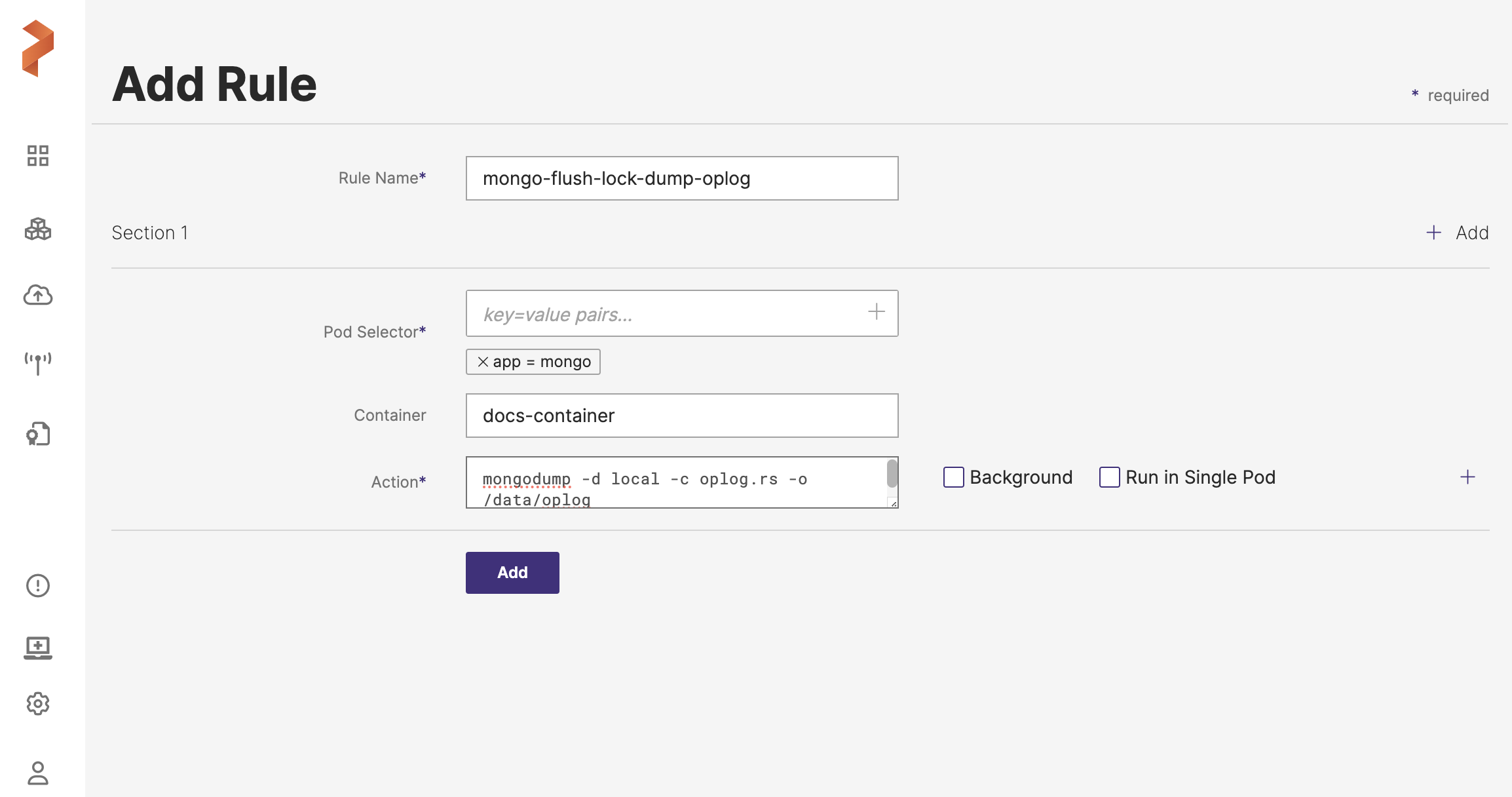 Create a post-exec backup rule for MongoDB