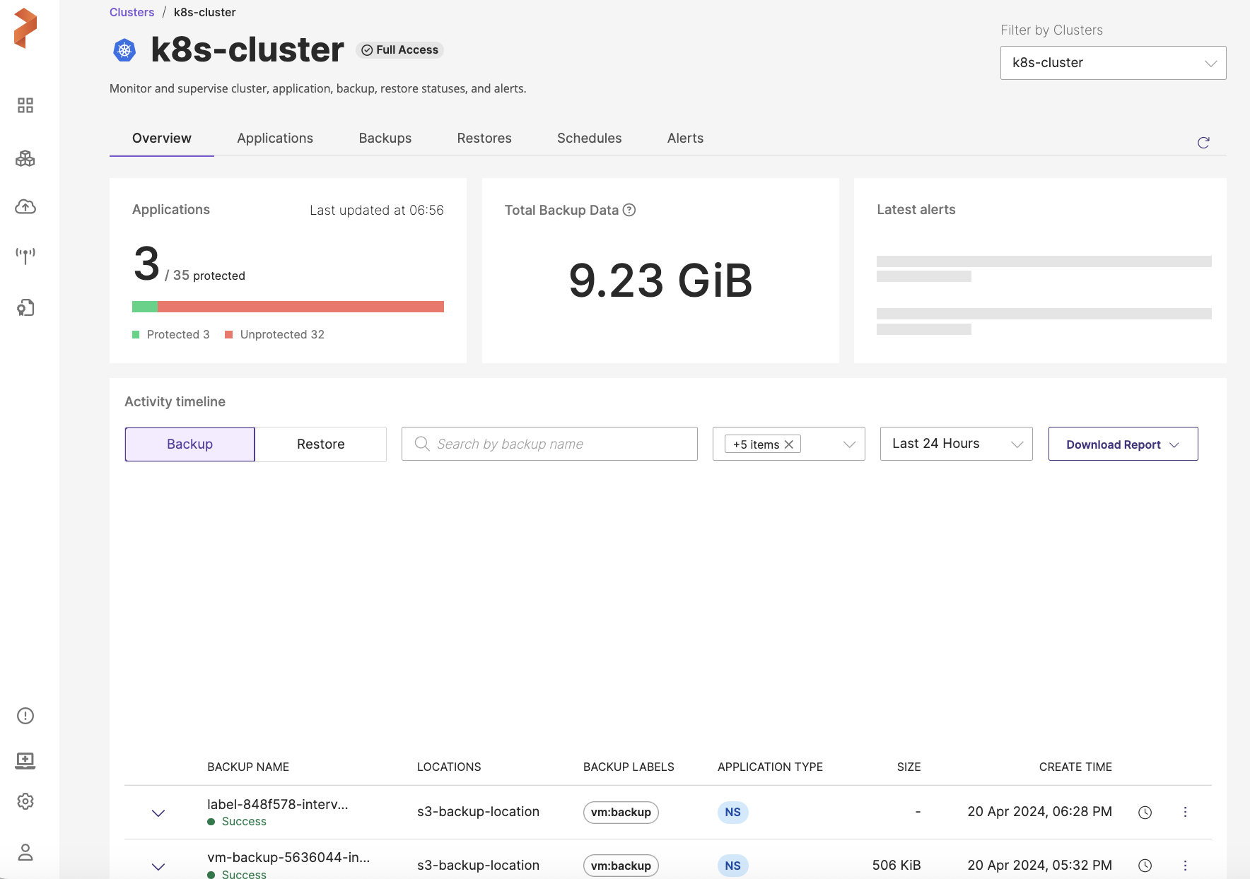 - Choose the application cluster that contains the namespace or VM to be backed up.