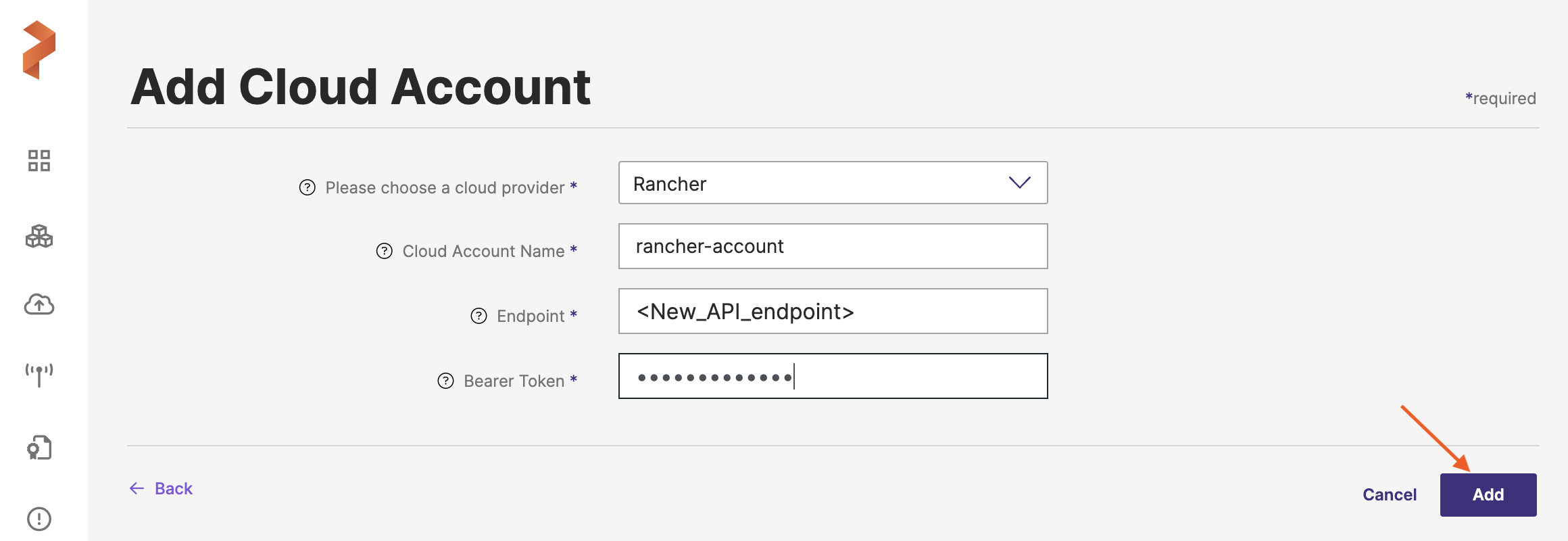 To add a Rancher cloud account: