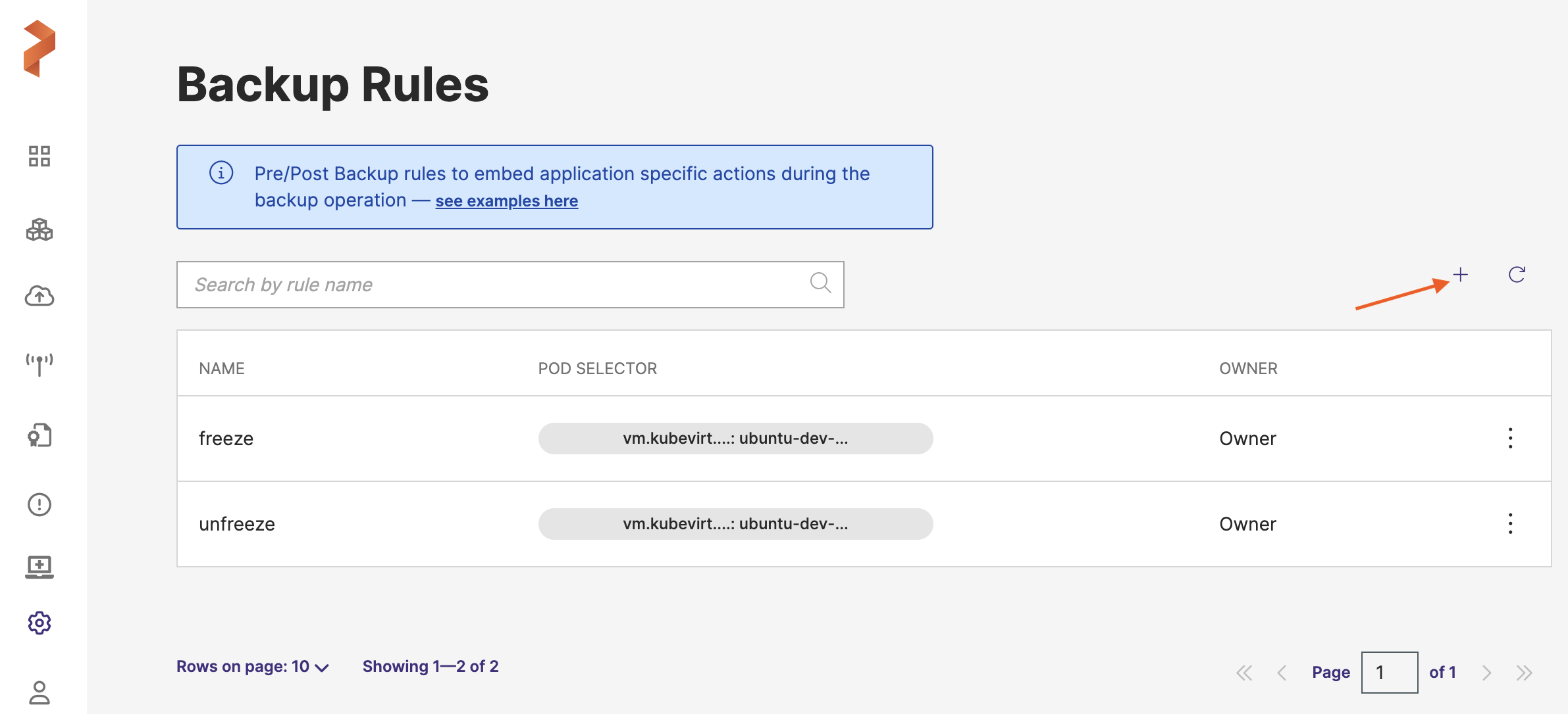 Some applications may only require freeze or pre-exec rules. If you want to add multiple instructions to a rule, you can add sub-rules. For example, while backing up an Elasticsearch application, you can add a sub-rule for a health check along with freeze operation.