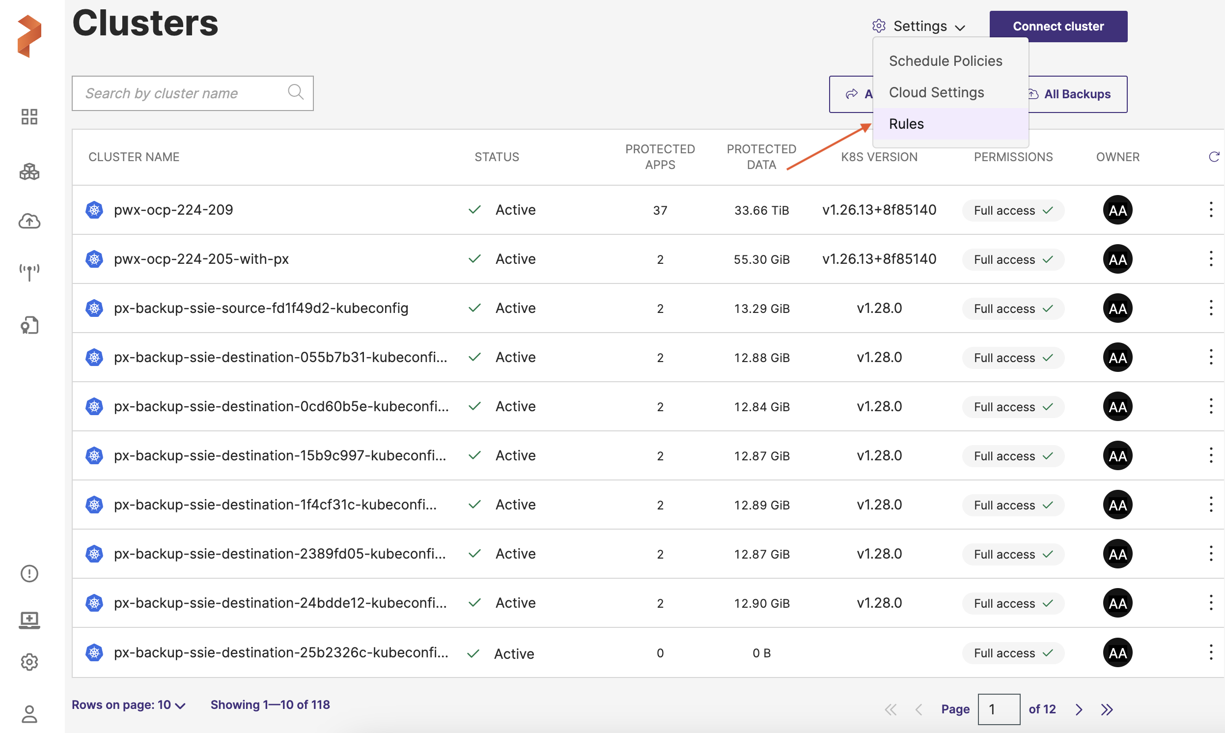 Backup rules are database-dependent scripts executed on containers before or after the backup operation to ensure application-consistent backups. Rules executed before and after the backup operation are called pre-exec and post-exec rules respectively. These rules are predominantly used to either freeze or unfreeze input/output operations of applications to facilitate Portworx Backup to take consistent backups.