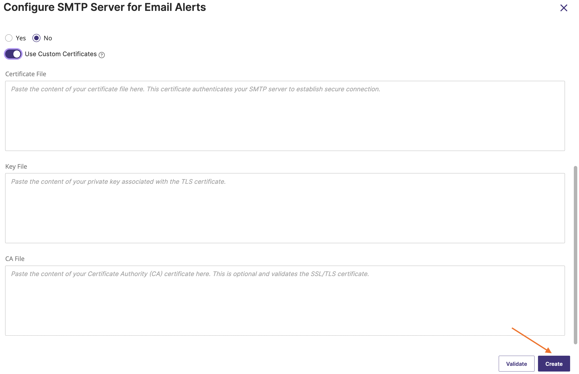 Use Custom Certificates: enable to use custom SSL/TLS certificates for secure connection between the SMTP client and server