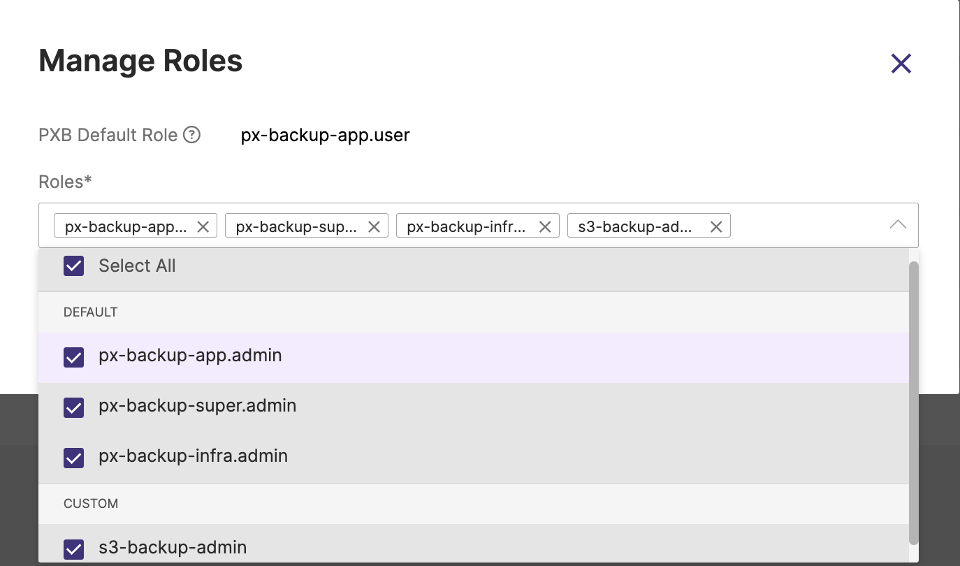 Portworx Backup allows you to map any existing role to a user or user group.