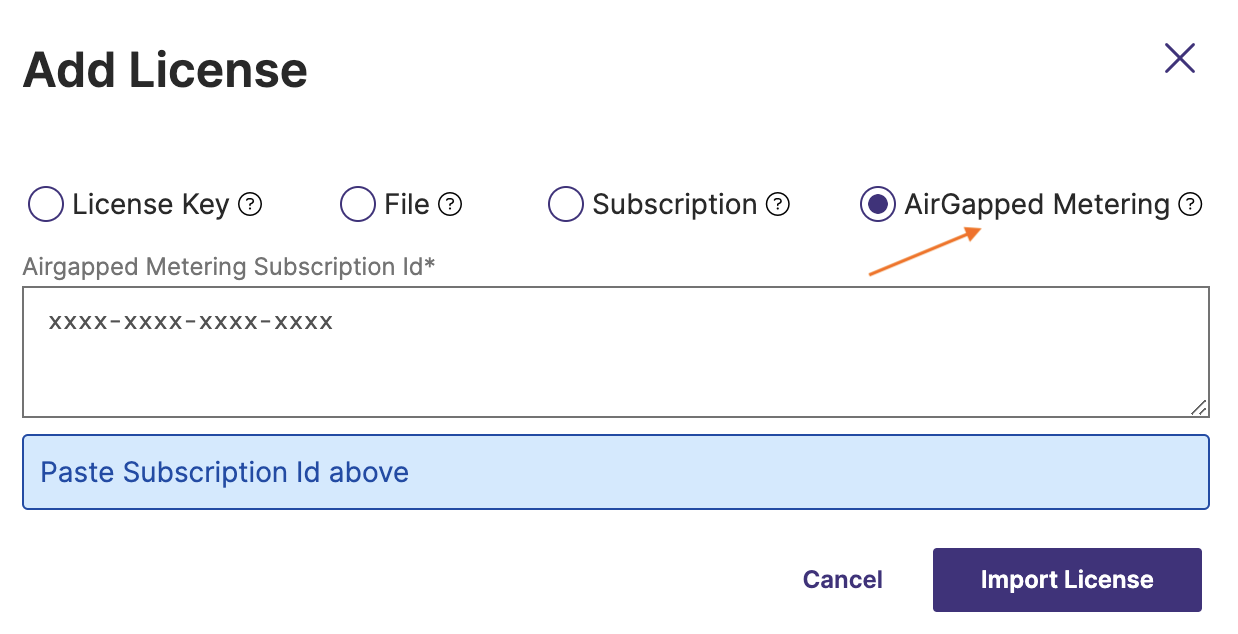 Choose AirGapped Metering and then click Import License