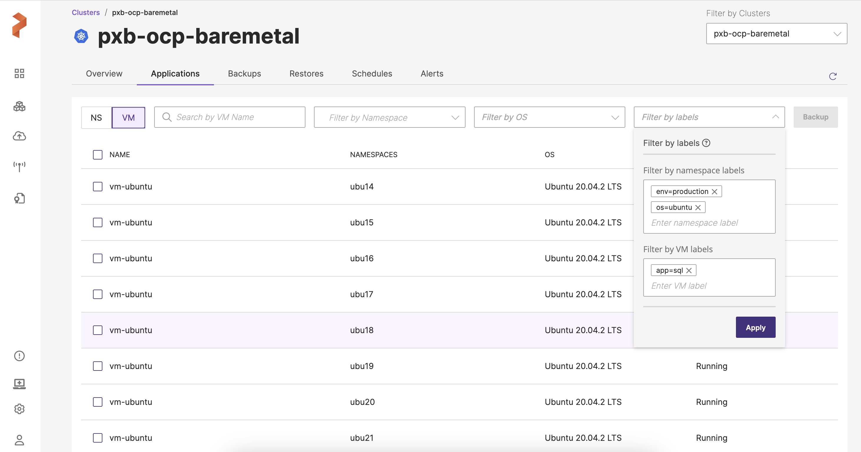 Portworx Backup now supports more flexible backup selection by allowing users to include or exclude VMs and their resources based on the labels. This feature applies to both manual and scheduled backups and helps users to quickly pick the required VMs and their resources for the backup operation.
