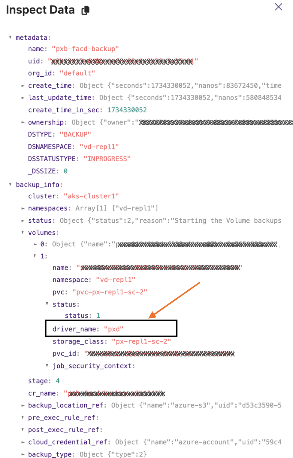 To know the type of driver that PXB has utilized to create a backup, navigate to the end of the backup row, click Vertical ellipsis and select View Json as shown below. You cal also search the driver type quickly with the search phrase: driver_name