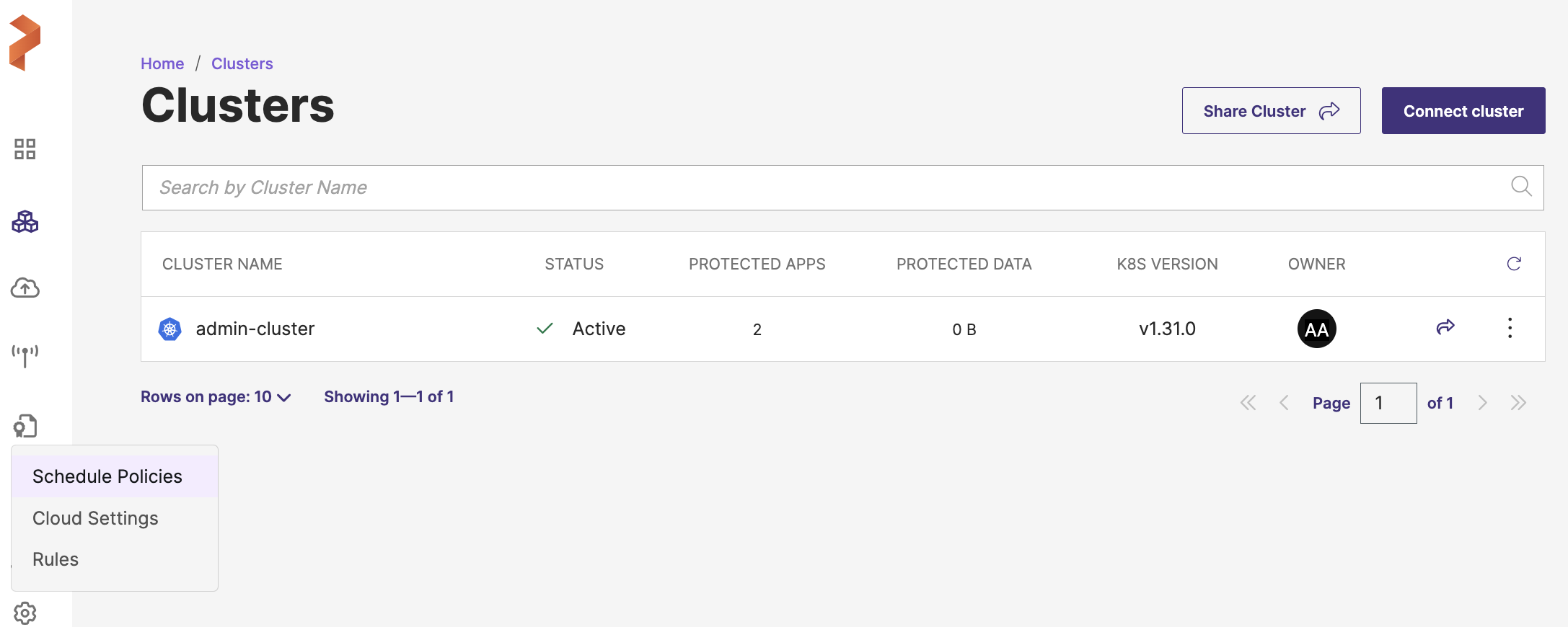 noteAll schedule policies are executed on the connected application cluster's local time zone.