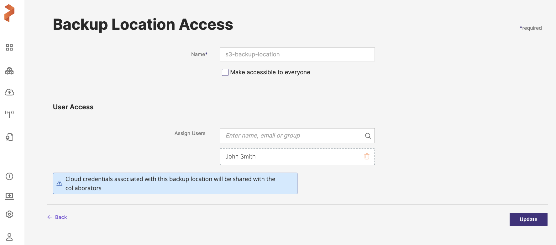 The backup location appears in the Backup Location Access page of the collaborators to access.