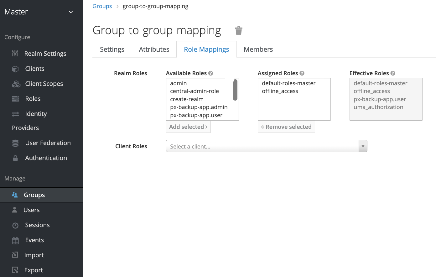 For Group, click Select Group and then choose the px-backup group to map with AD group.