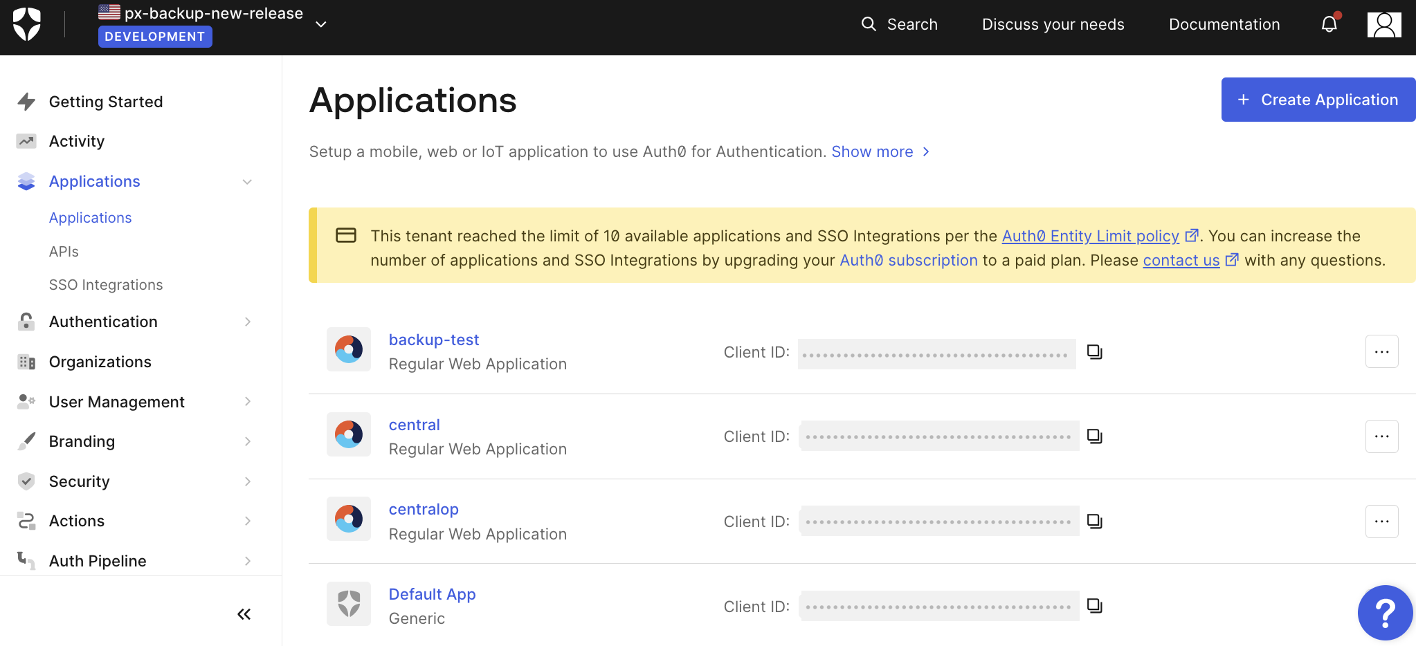 6. After installing Portworx Backup (and integrating Auth0), login to Auth0 web console.