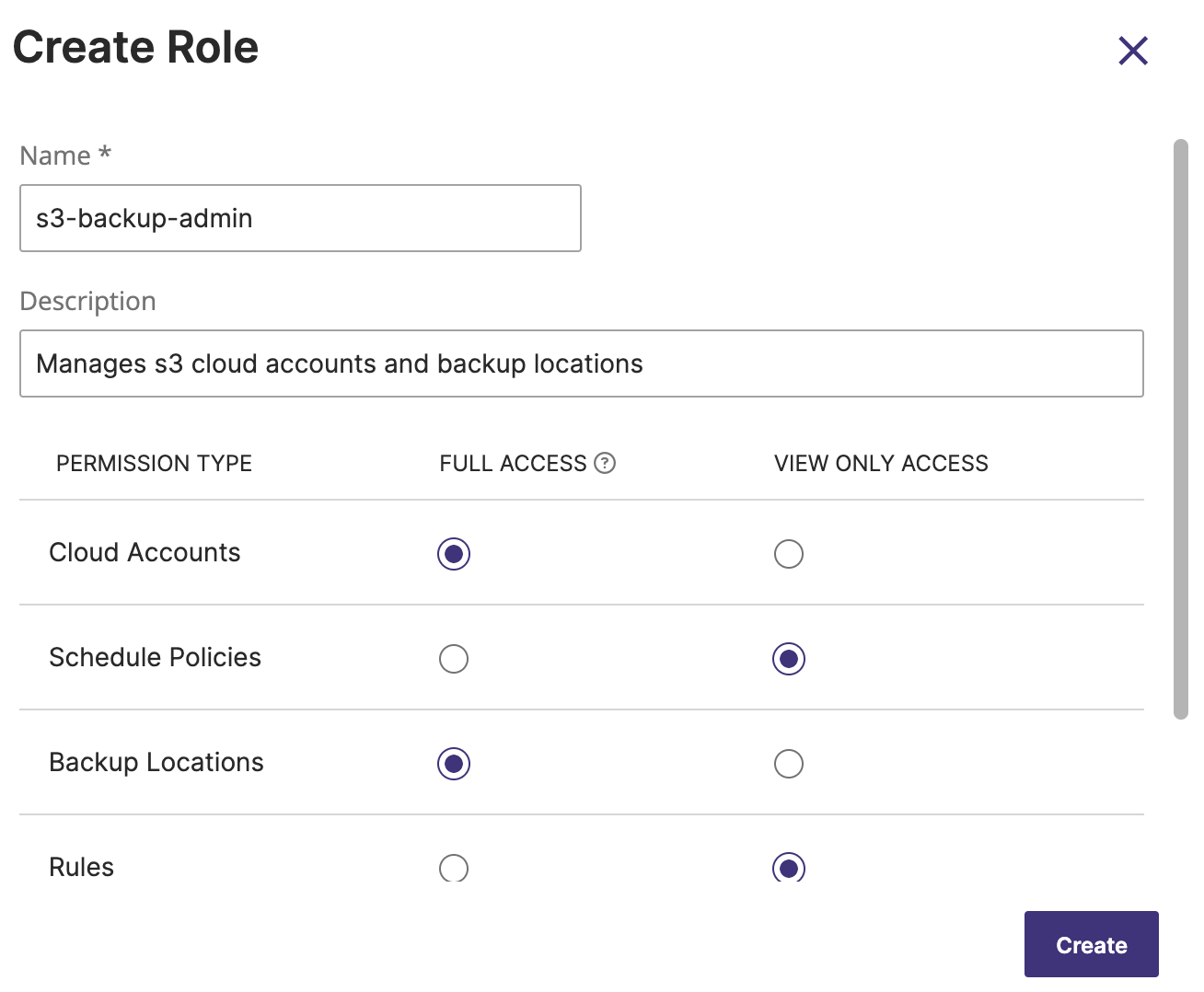 Description: enter a brief description about the role and available permissions to access Portworx Backup resources.