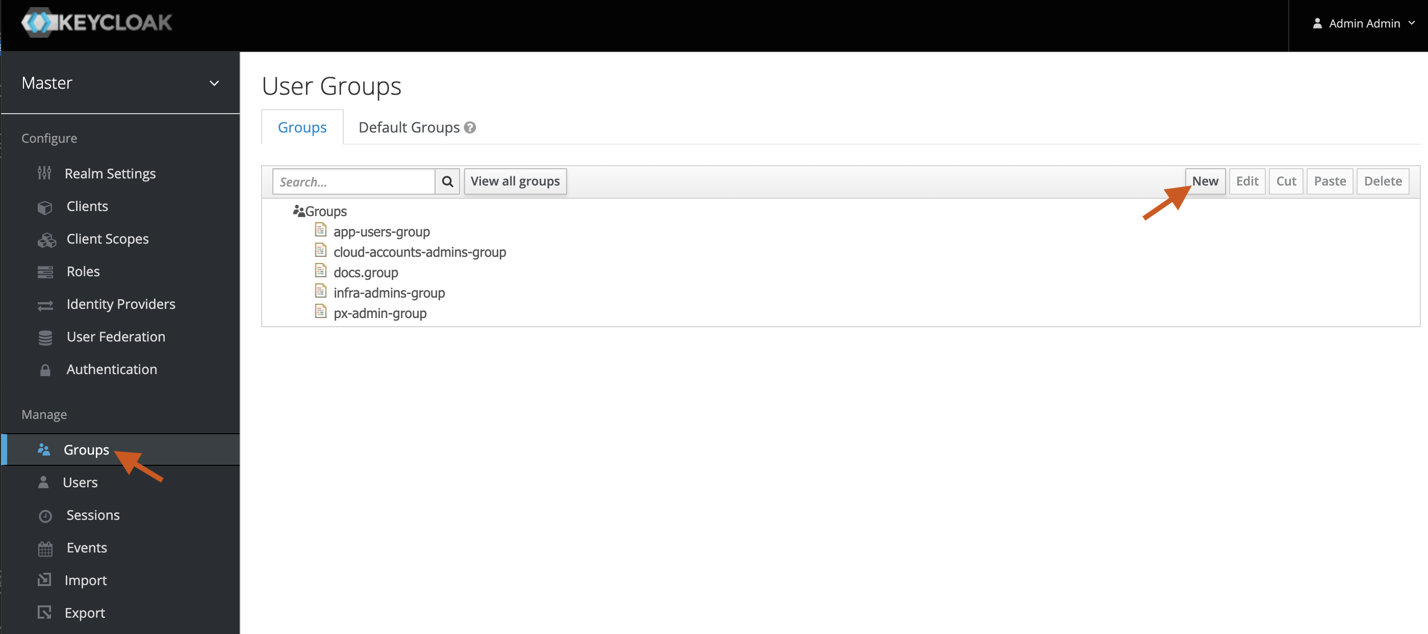 From the Master > Manage menu, select Groups.