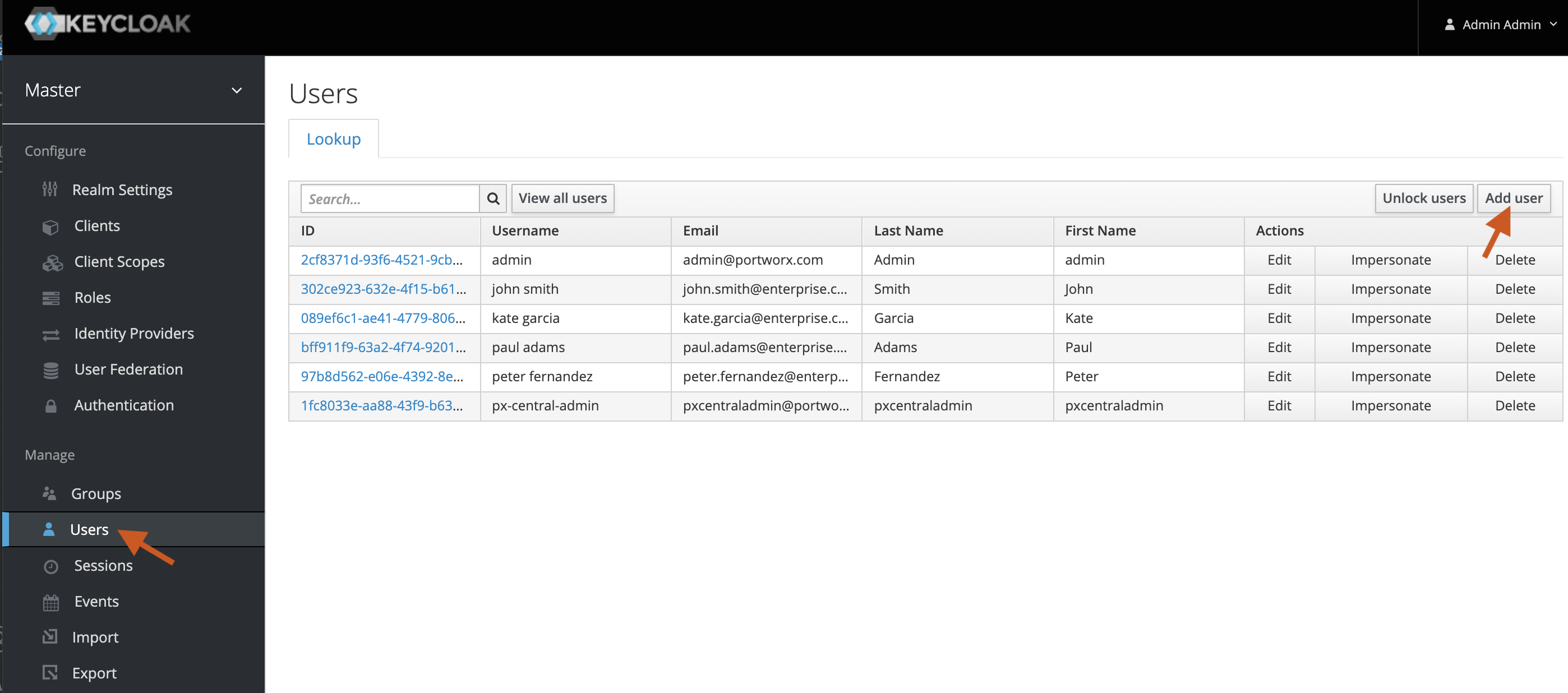 To add users through Portworx Backup Keycloak: