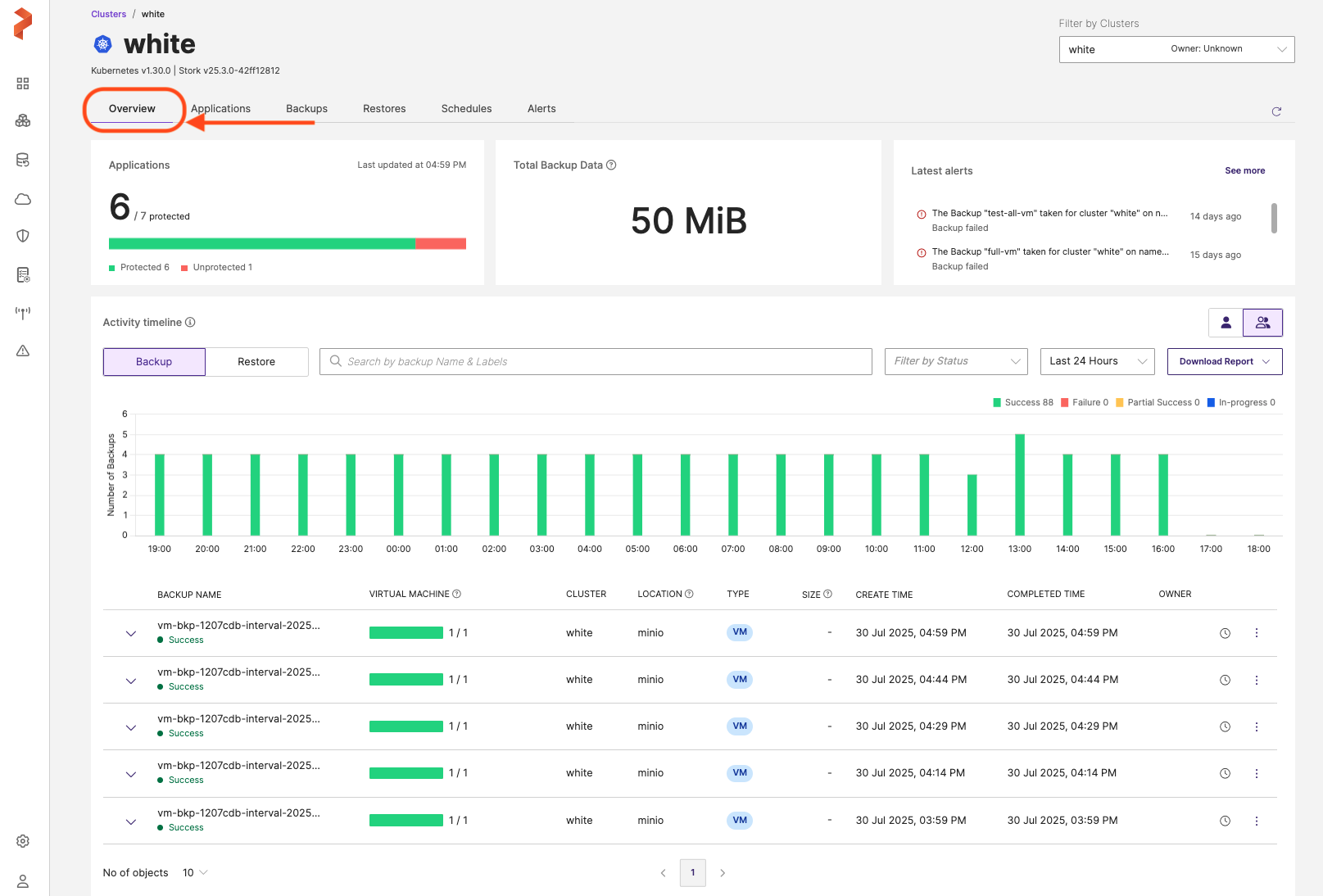 Select the namespace(s) you want to back up. You can create a namespace or VM backup in this page.