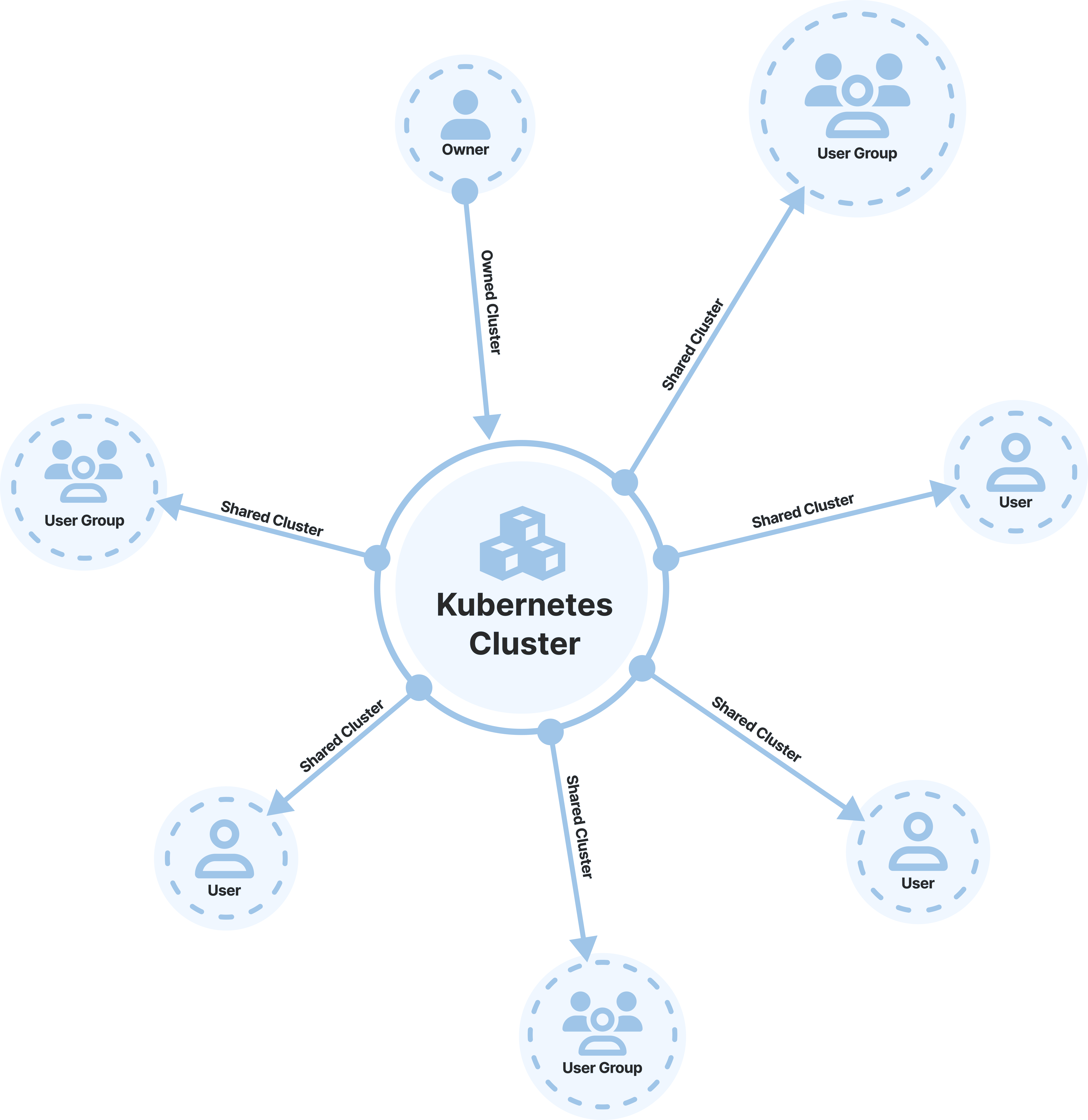 - Cluster owner can share the cluster with other users either through web console or API or CLI.